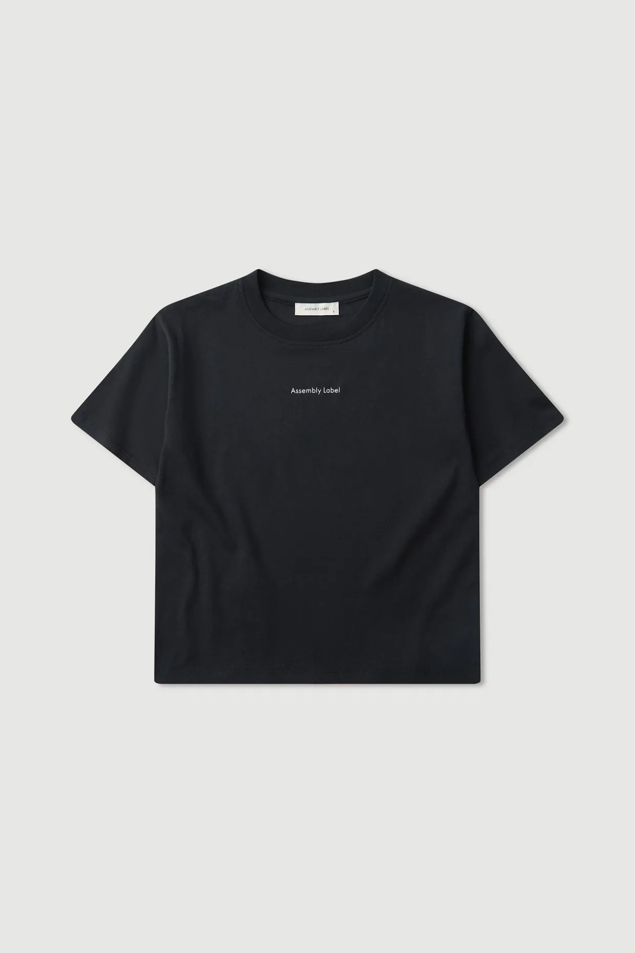 Kids oversized cotton tee featuring ribbed neckline and front logo detail.