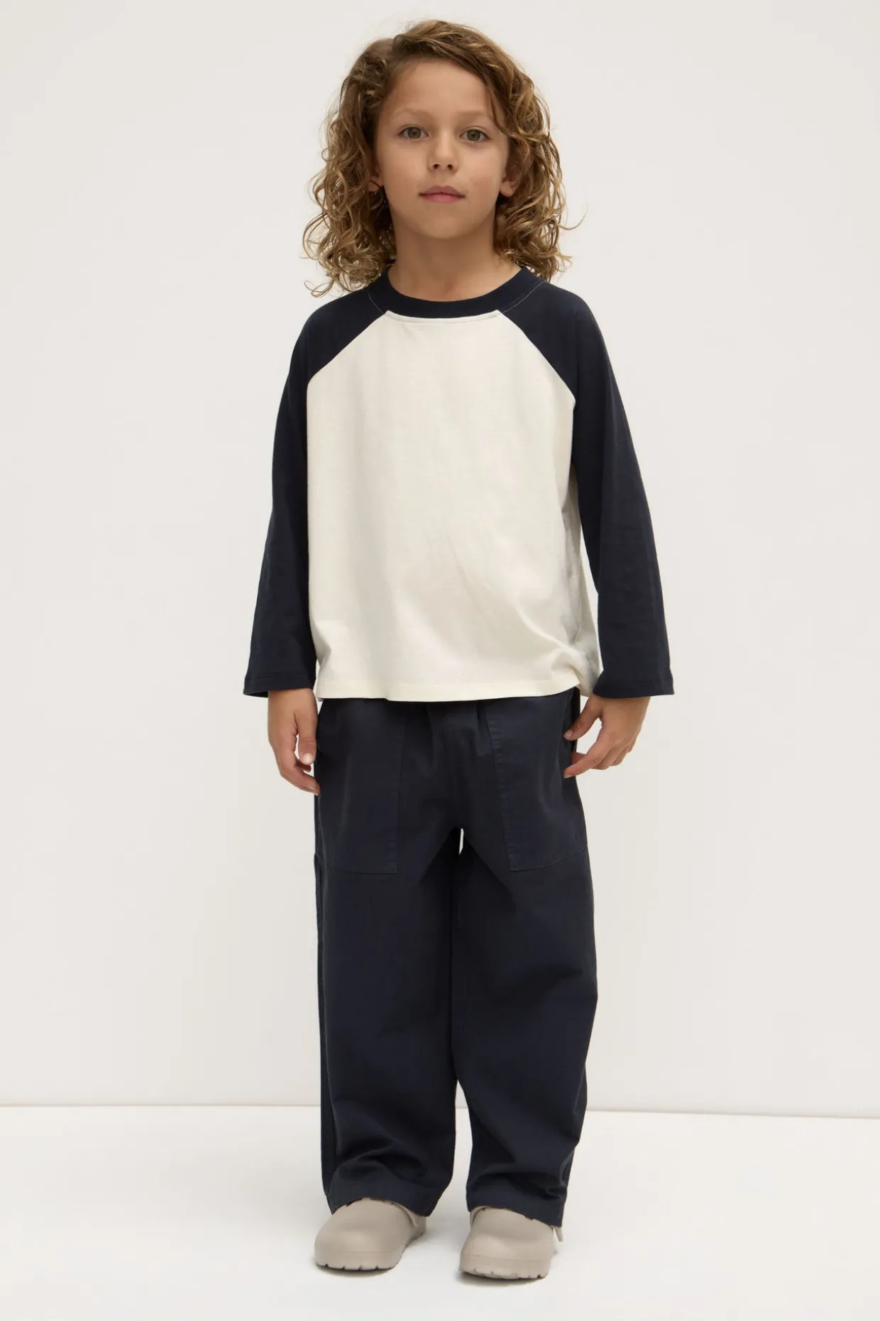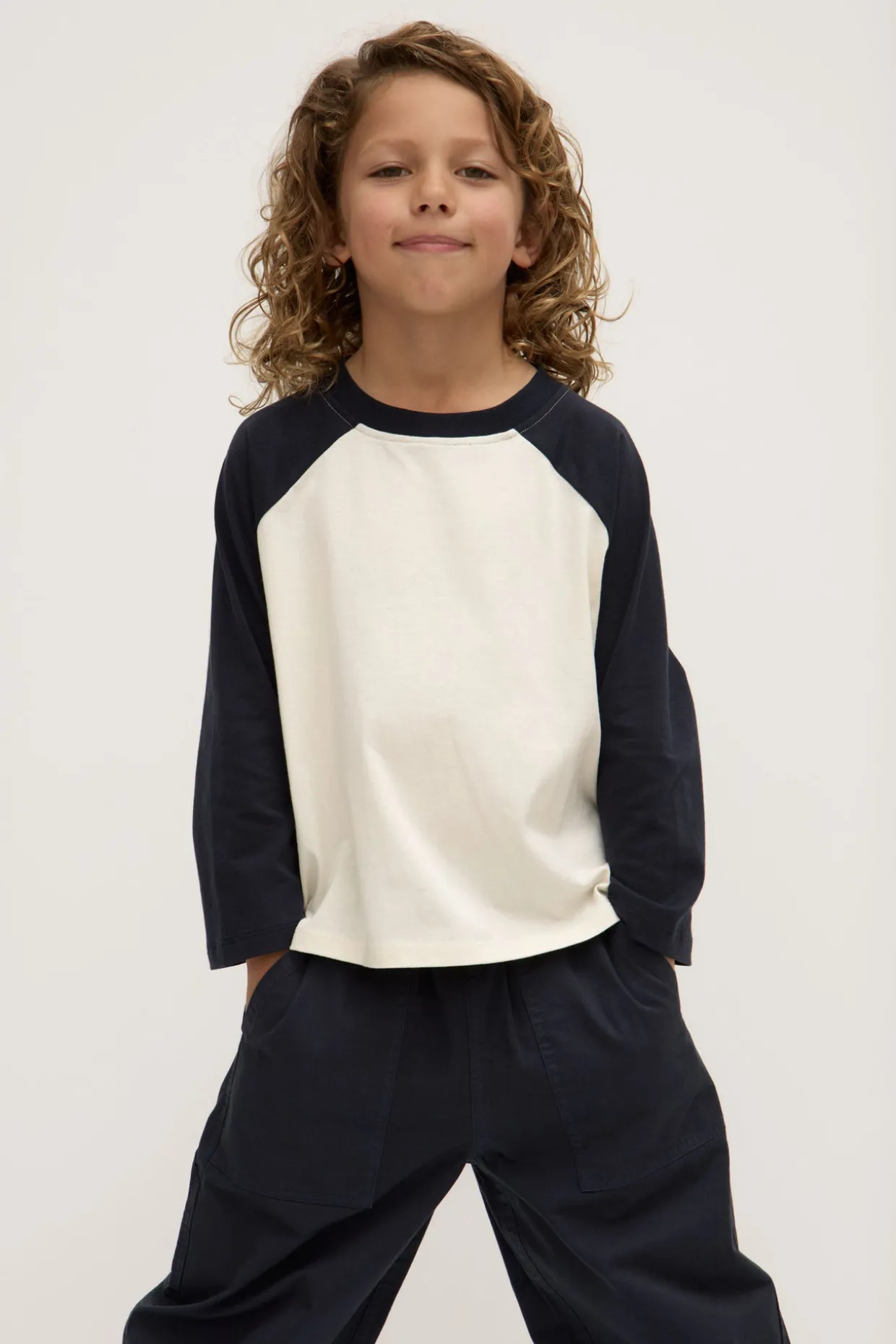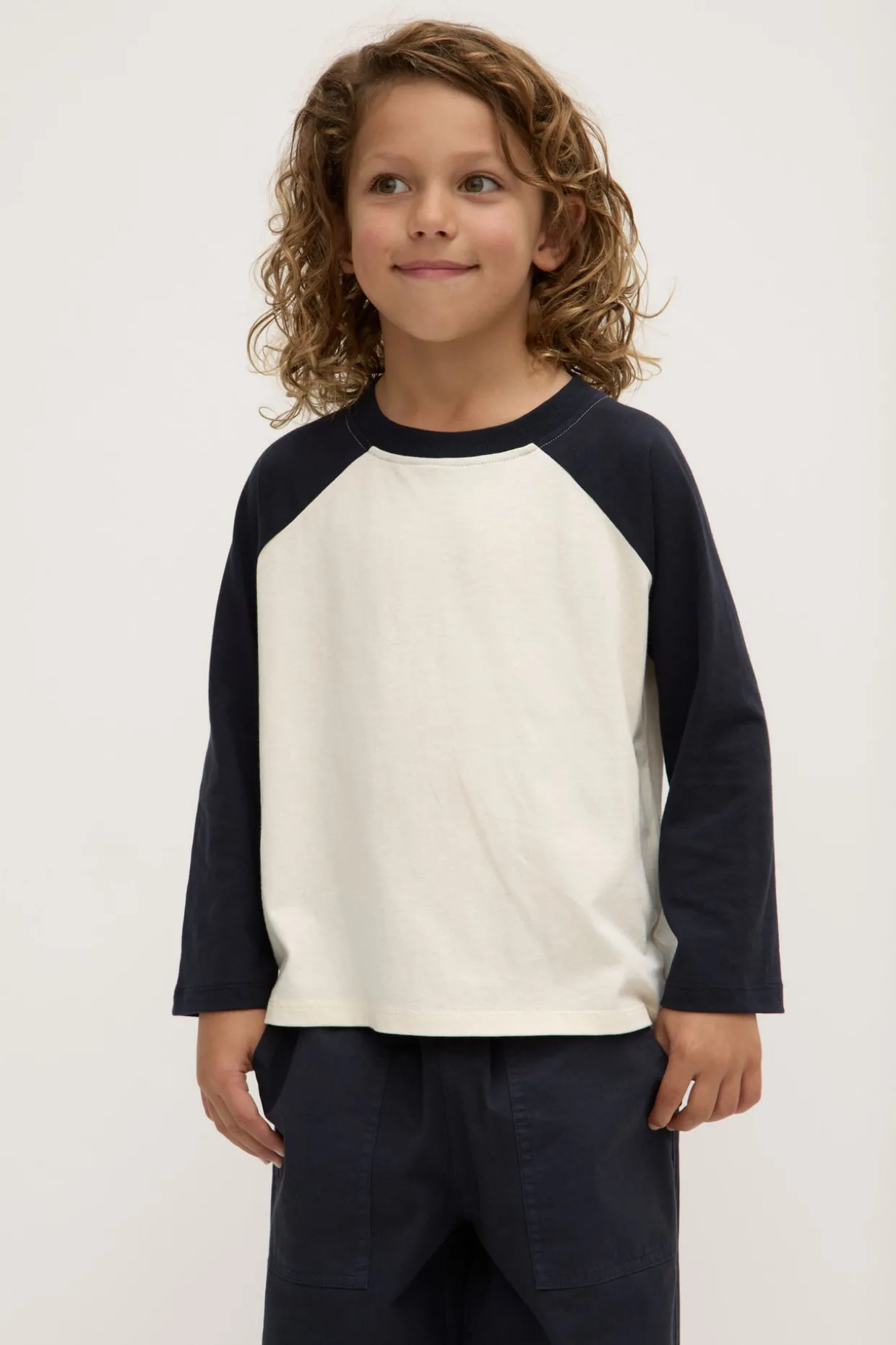 Oversized kids long sleeve top with contrast raglan sleeve.