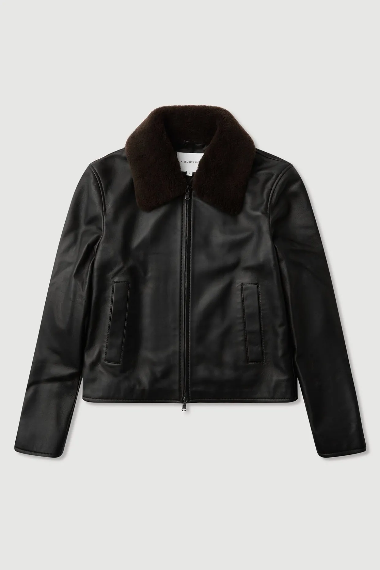 A reimagination of the classic leather bomber. Made from premium lamb leather and featuring a removable shearling collar, this jacket is a timeless addition for your capsule wardrobe.