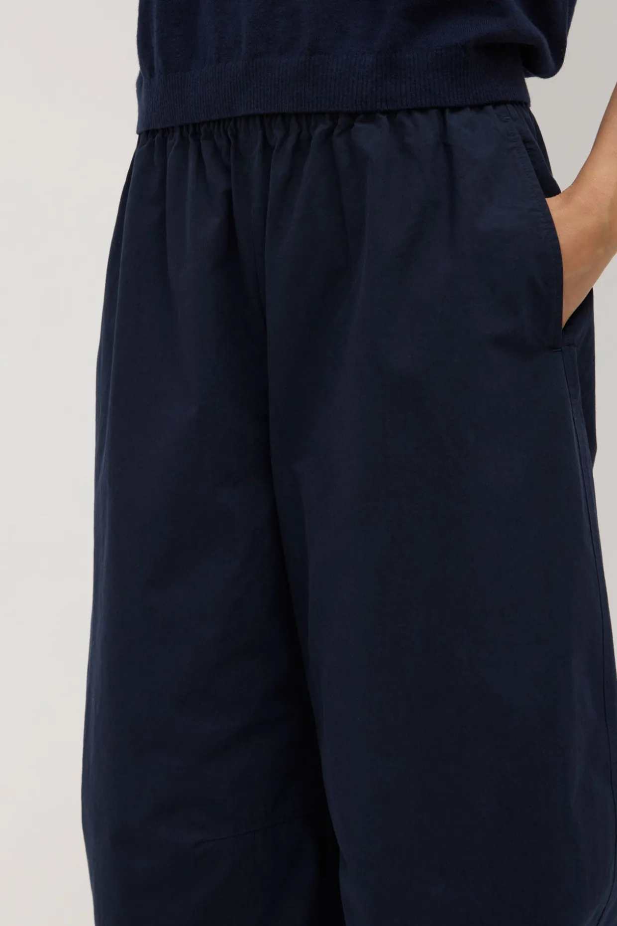 Crafted from a textured cotton, the Lola Barrel Leg Pant offers a voluminous fit on the leg which flares out at the knee and tapers at the ankle. Designed for a relaxed look, it features an elasticated waistband, side pockets and seam detailing at the knee and ankle.