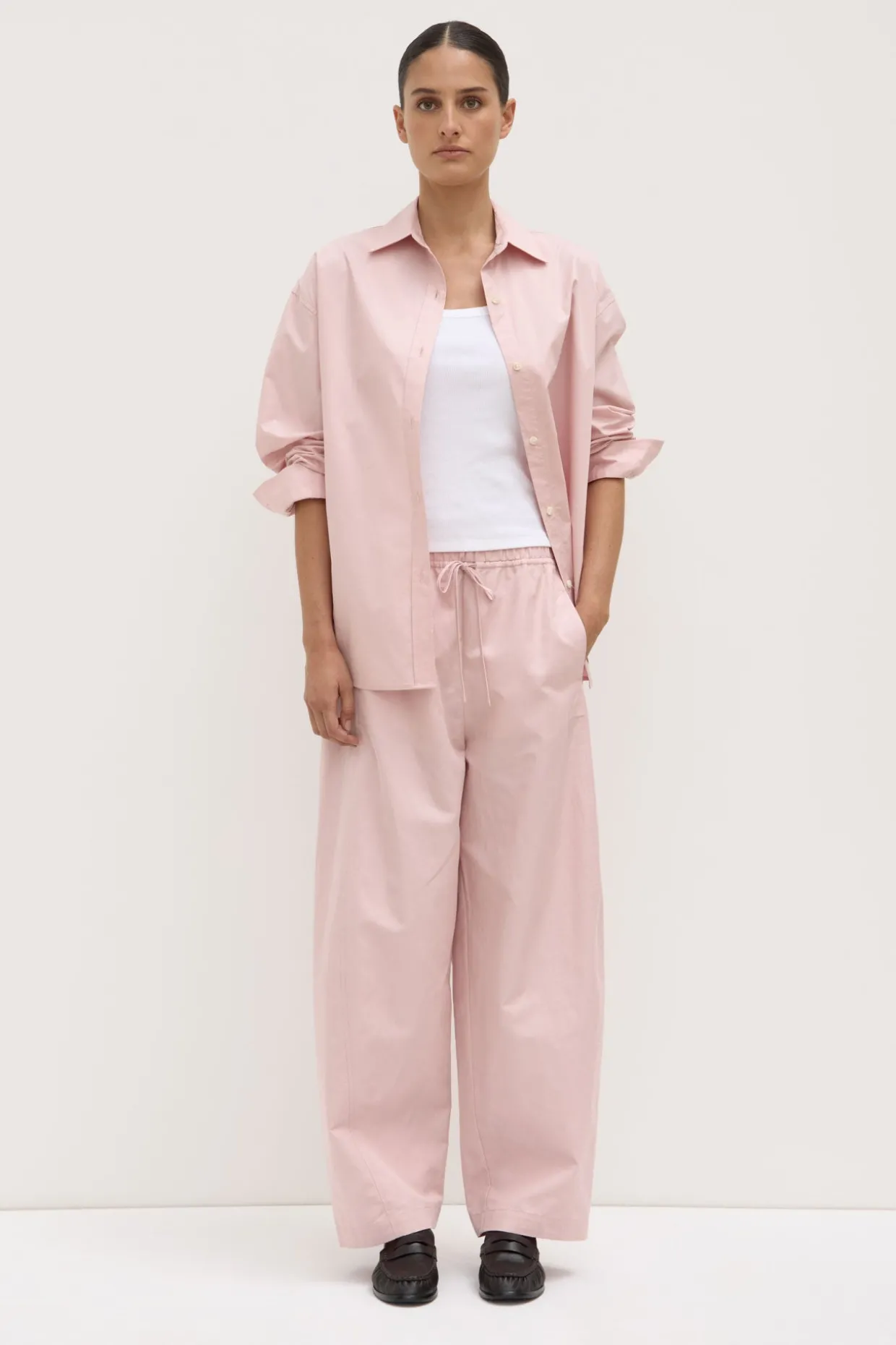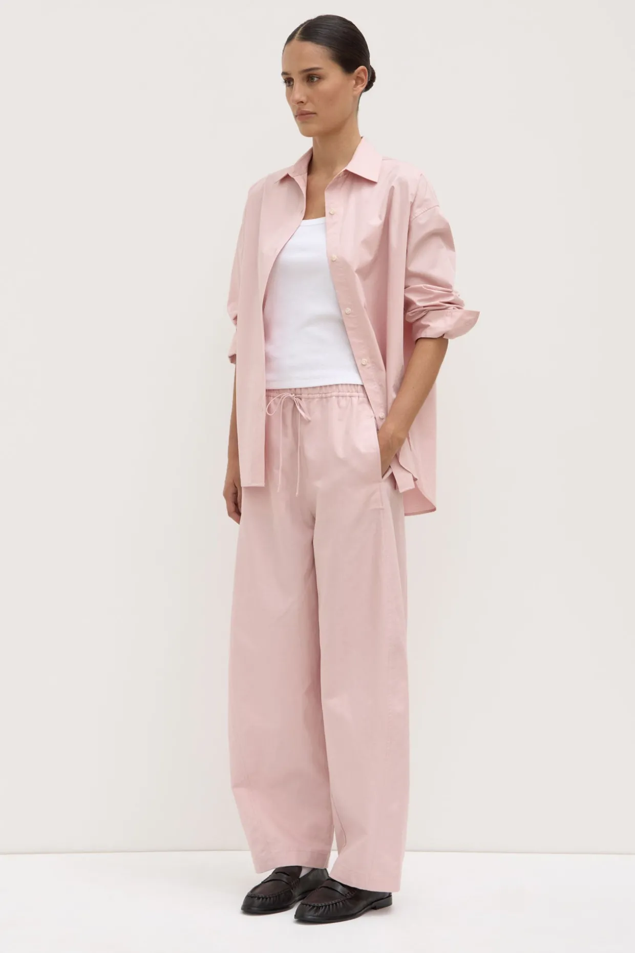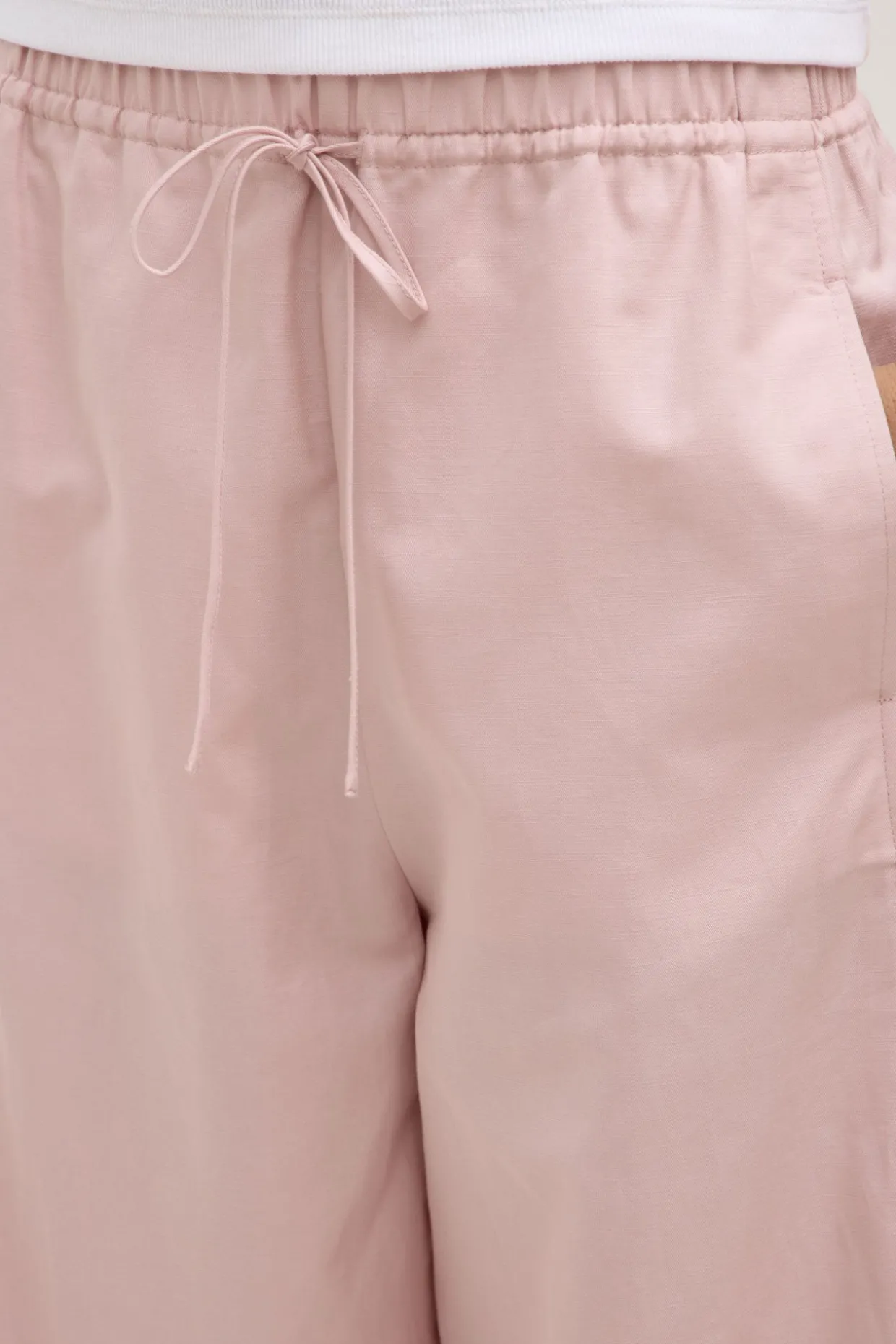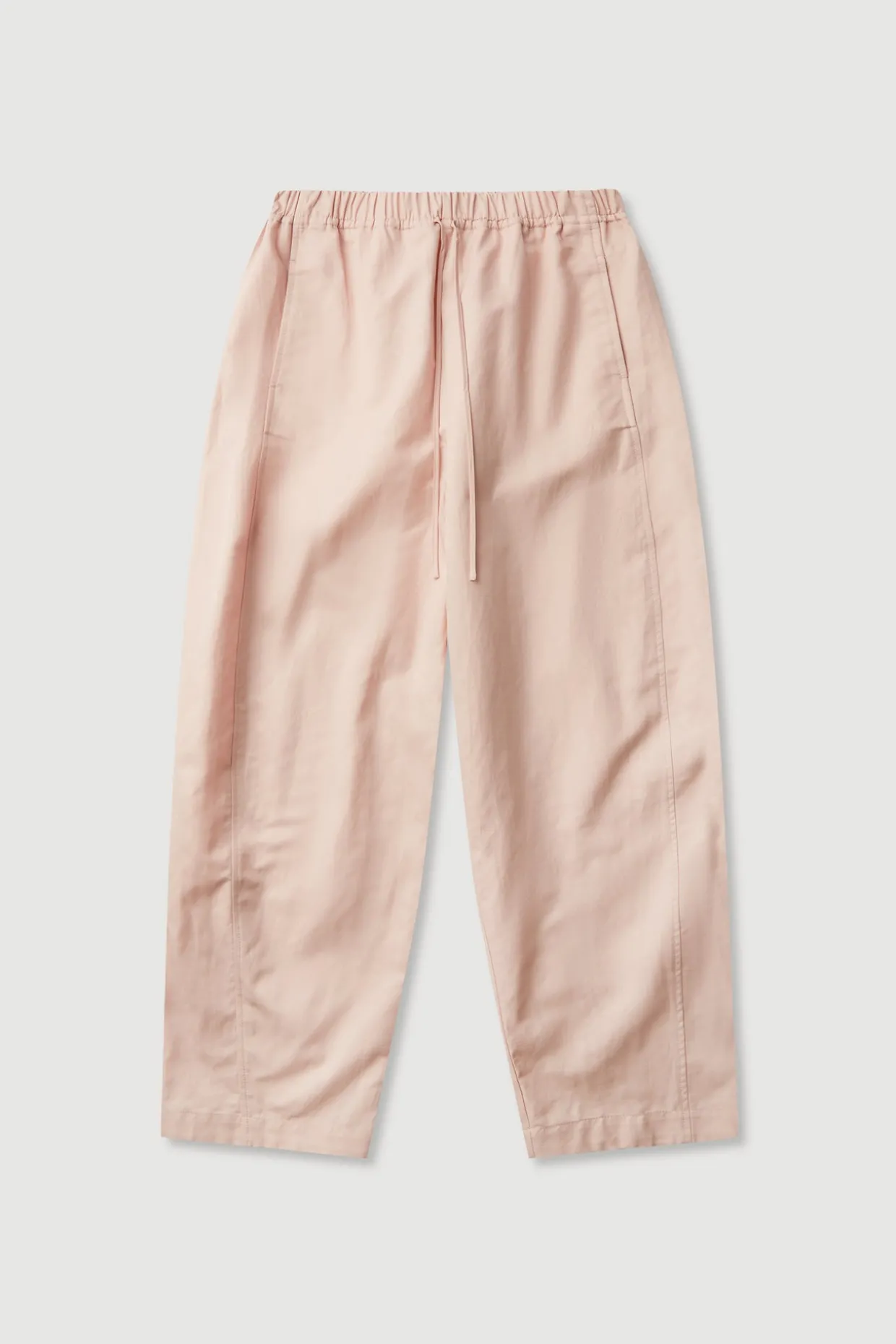 Lightweight textured cotton-linen blend pant featuring a tapered barrel-style leg. The elasticated waist band and draw cord allows you to adjust the pant to your desired fit.