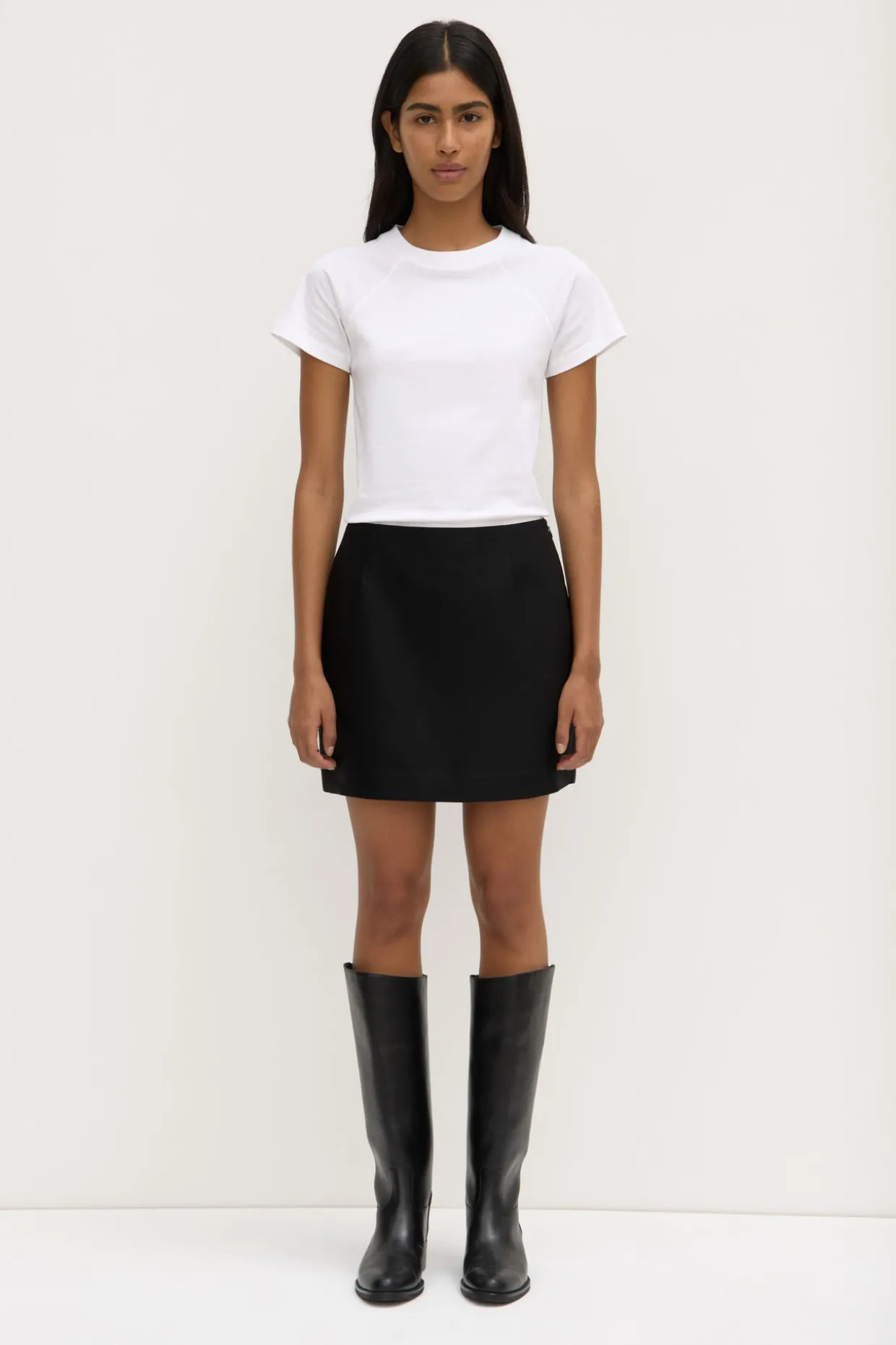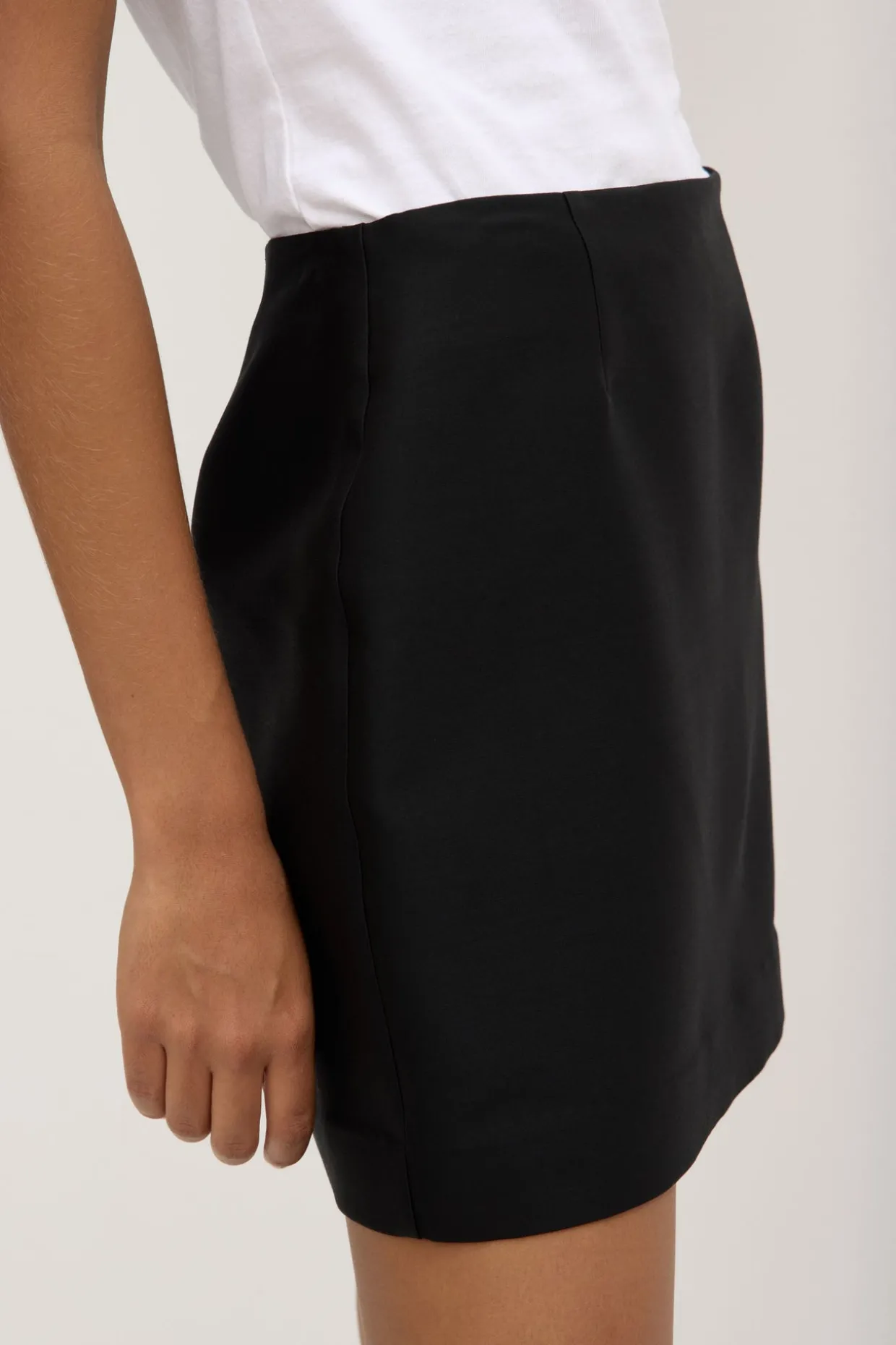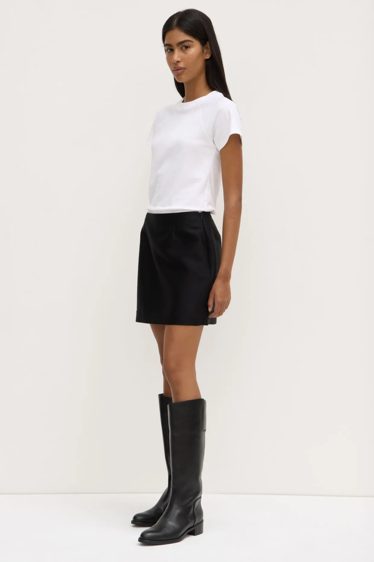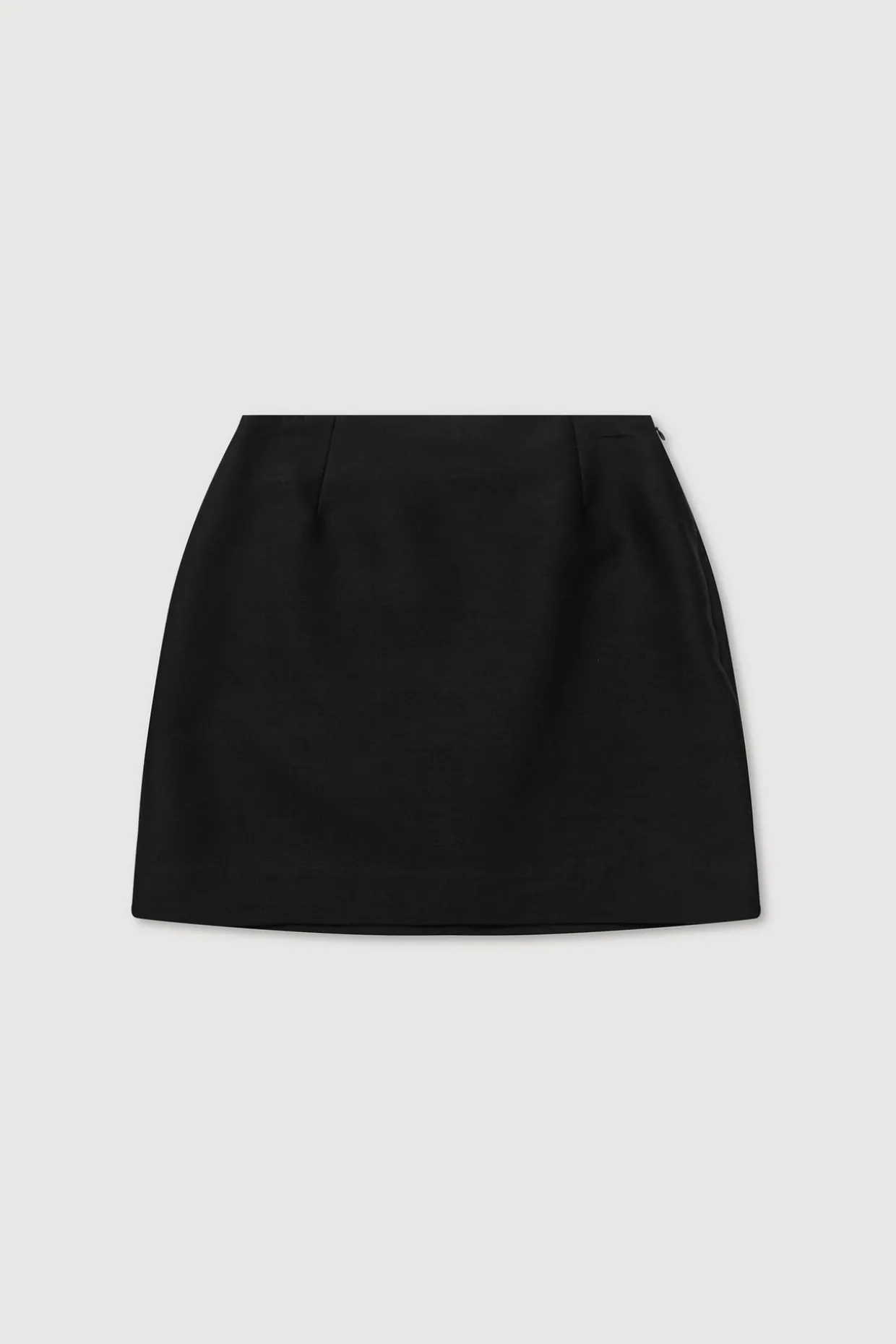 Classic womens mini skirt crafted from a luxurious wool silk fabrication. Designed to pair with all your essentials, this style fits seamlessly within a capsule wardrobe.